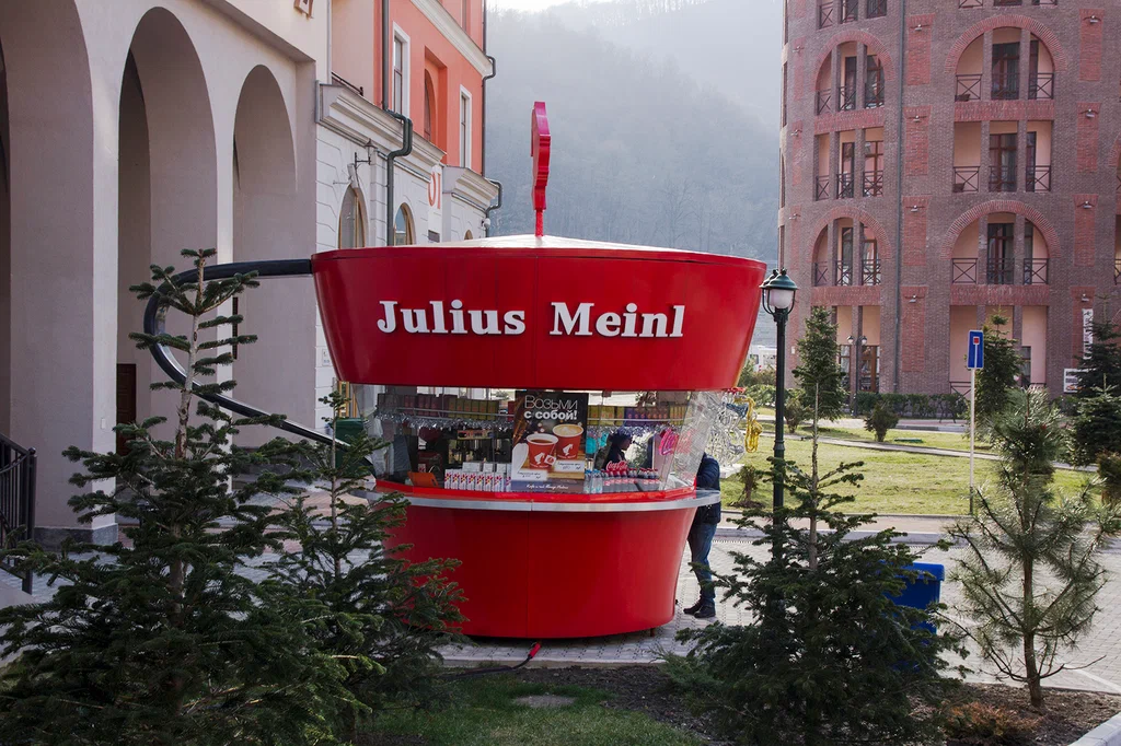 Иногда во время прогулки с семьей мы с женой покупаем себе кофе. Особенно в прохладное время года. И чаще всего мы выбираем кофейню в виде большой красной чашки. Это фирменная сеть Julius Meinl.