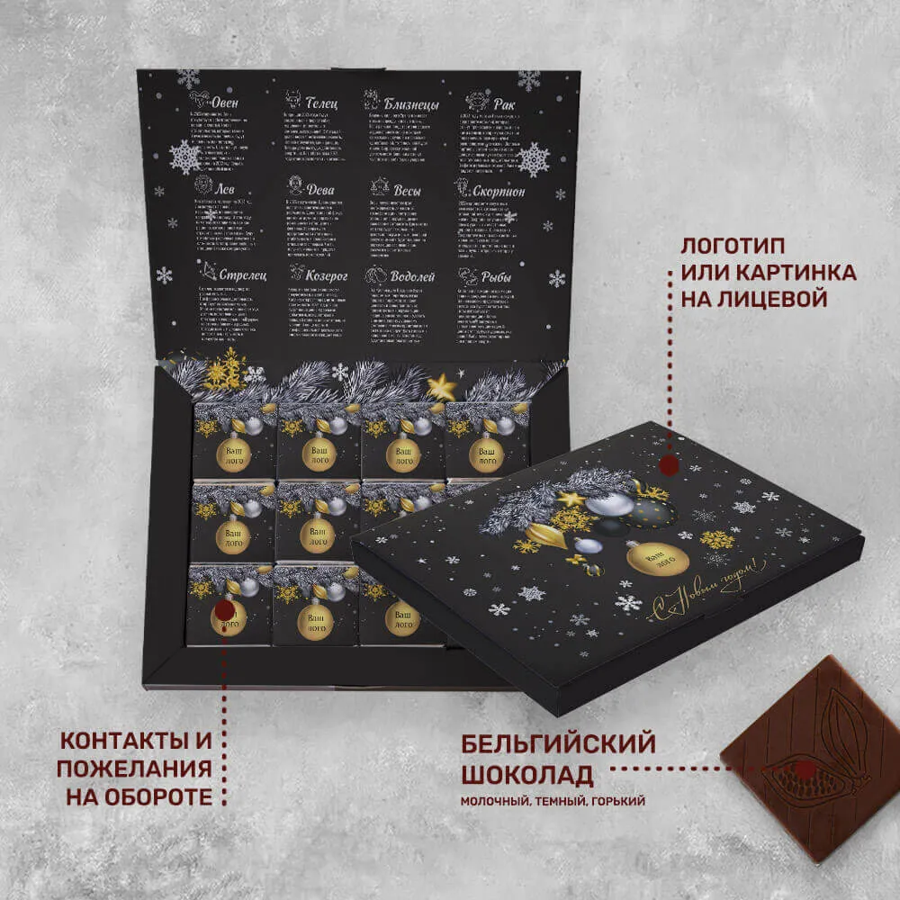 Книга 24 (24 шоколадки 5гр). Картонная коробка в форме книги с 24-мя шоколадками 5гр внутри в два слоя по 12шт. Можно заказать со своим логотипом и фирменным стилем на коробке и самой шоколадке.